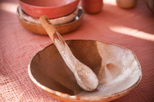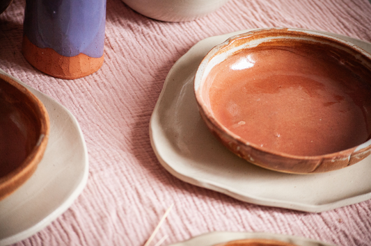 Nos pièces sont en grès naturel, l’argile la plus robuste. Toutes cuites à très haute température pour résister à la vie quotidienne !