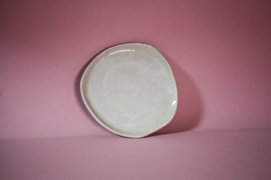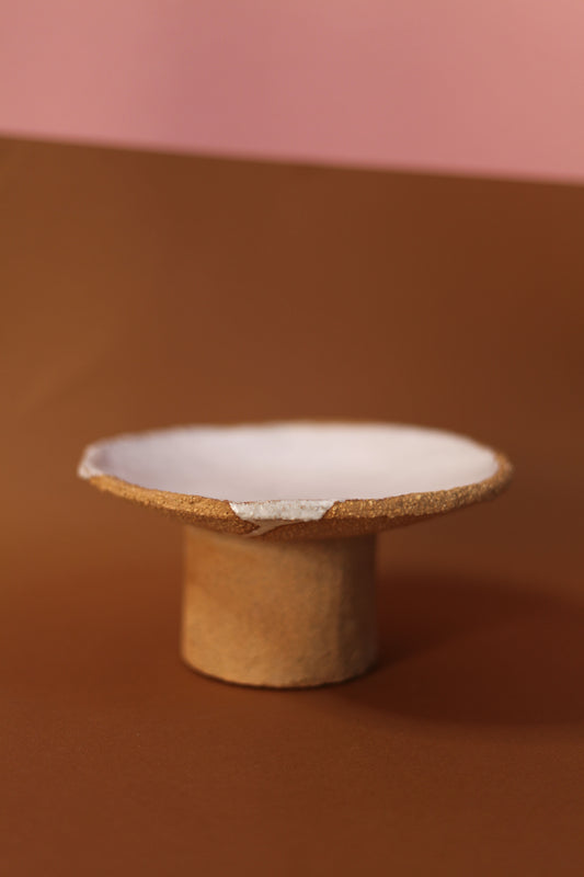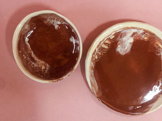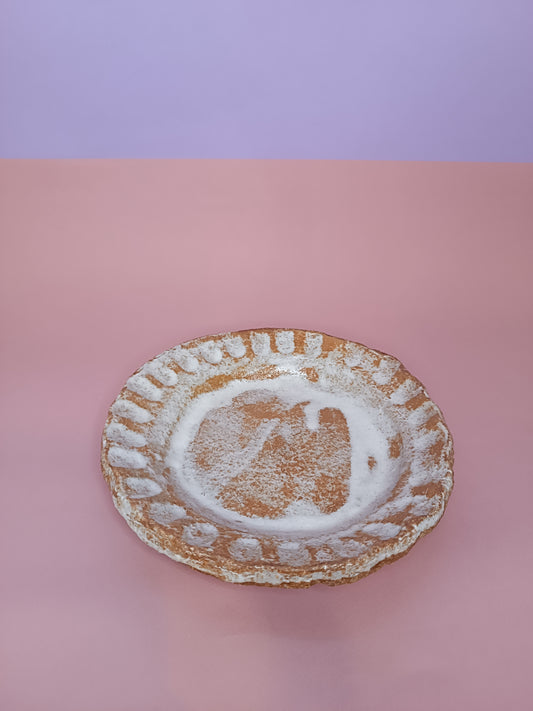 Grande assiette creuse terre rousse chamotté blanc, beige et brun