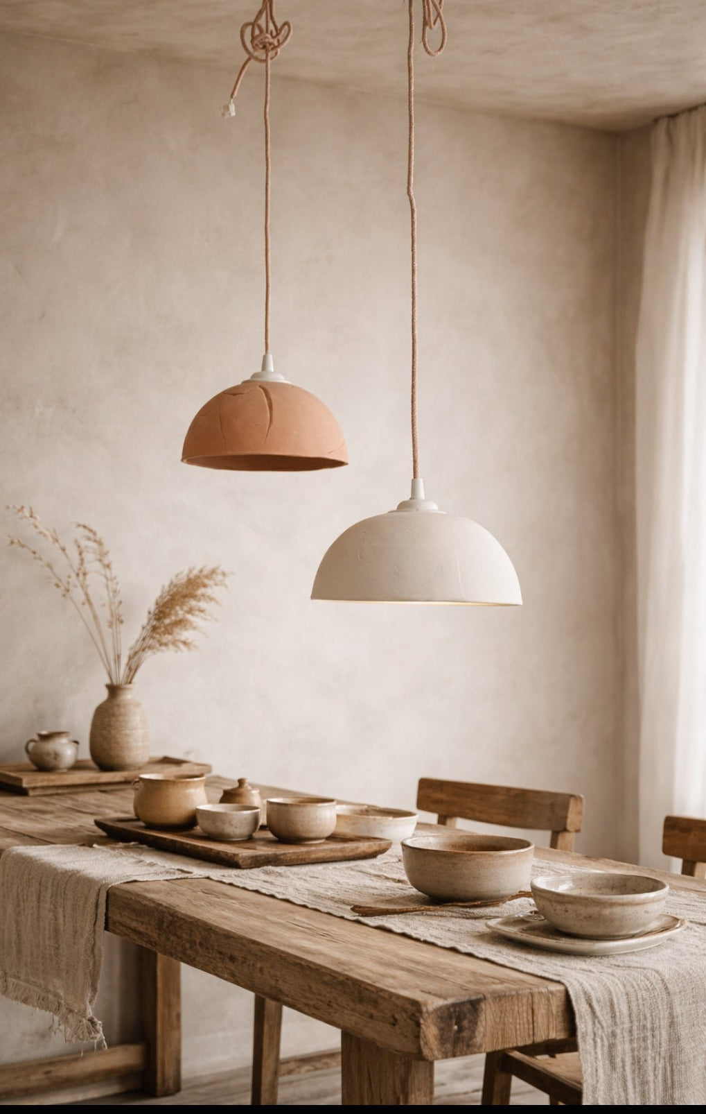 Les suspensions en grès roux offrent une ambiance chaleureuse et singulière. Deux nuances entre le beige et le rose, selon les températures de cuisson. Les ampoules sont de E27. Largeur de 20/22cm aprox