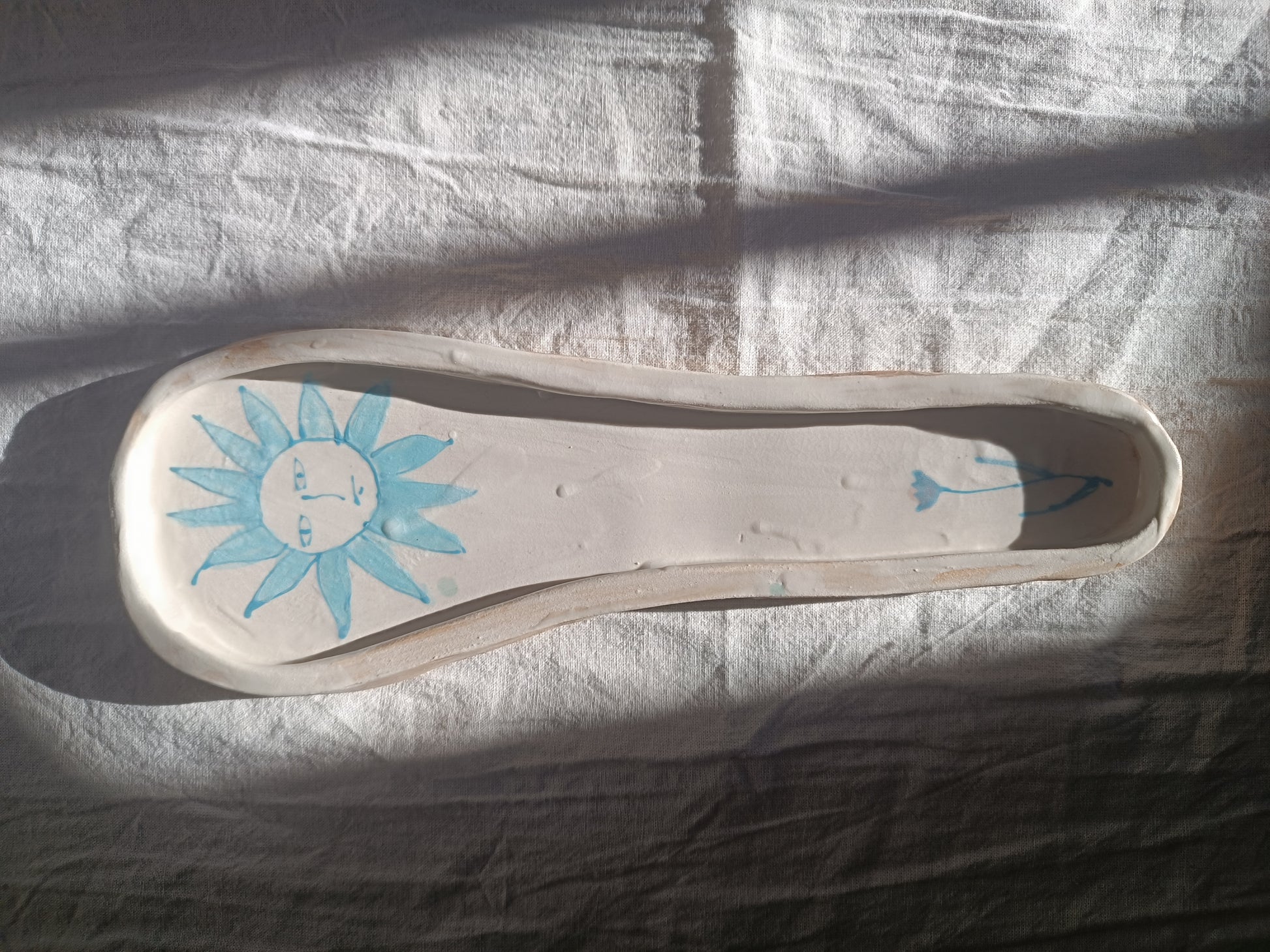 Repose-cuillère blanc et bleu
