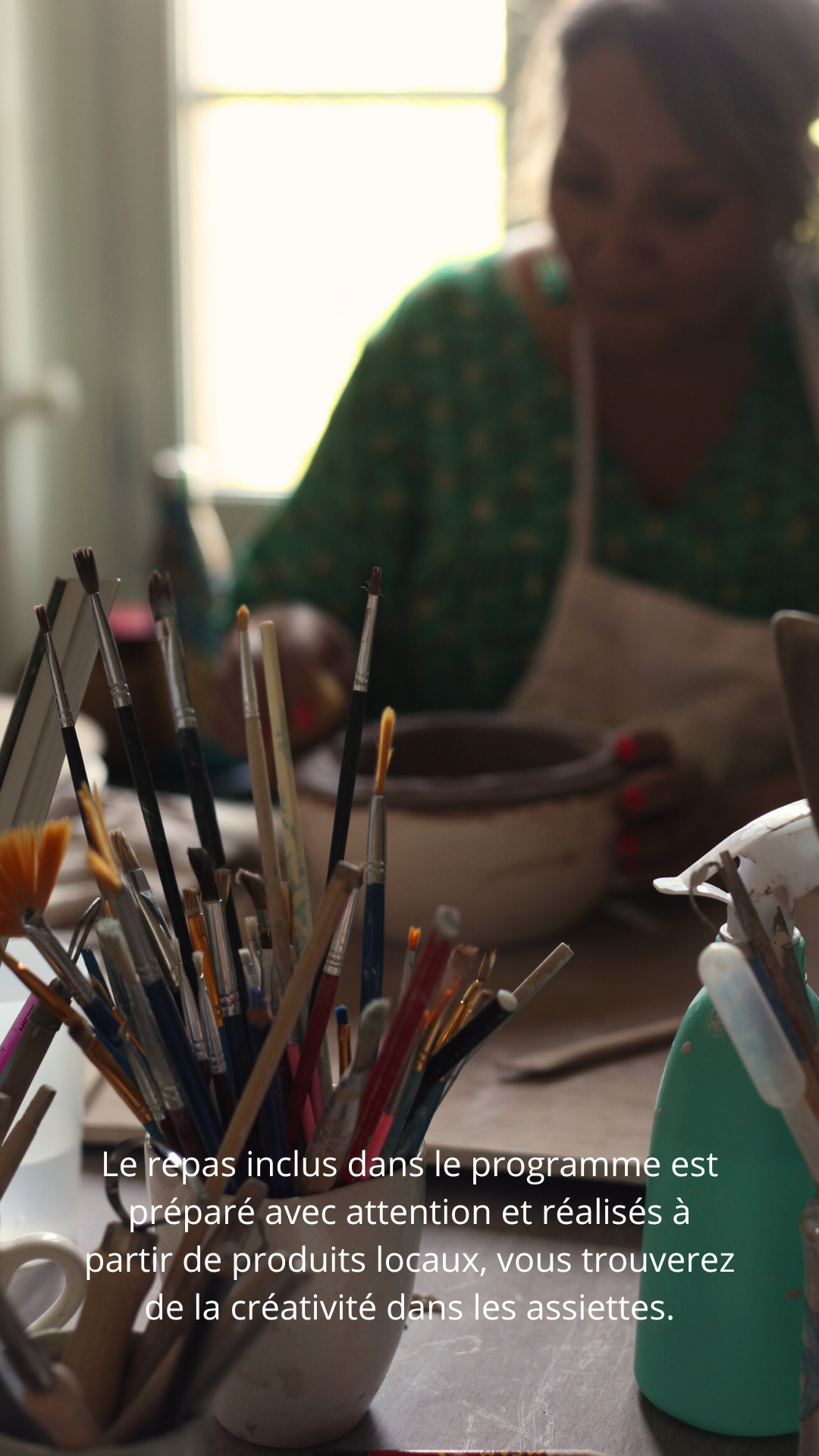 Les repas inclus dans le programme sont préparés avec attention et réalisés à partir de produits locaux. Vous trouverez de la créativité dans les assiettes préparées avec soin par Nina.